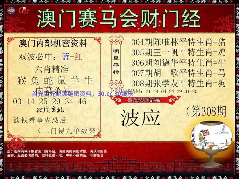 | 306期八肖 | 猴羊牛虎猪鼠龙马 | 开:牛17 |