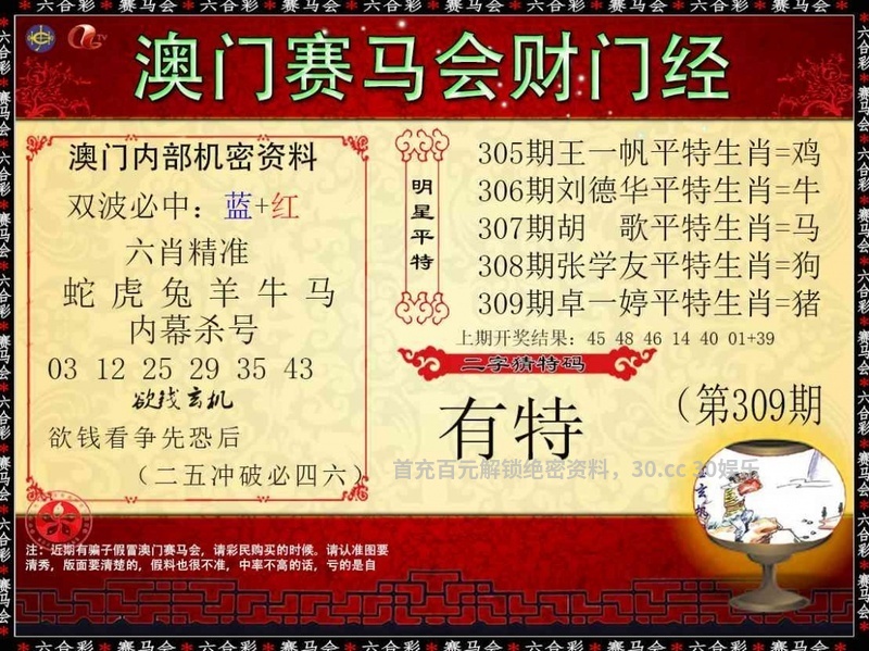 | 301期四肖 | 猪鼠马牛 | 开:牛05 |