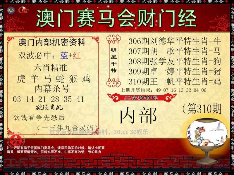 | 300期七肖 | 兔羊虎蛇狗龙猴 | 开:虎40 |