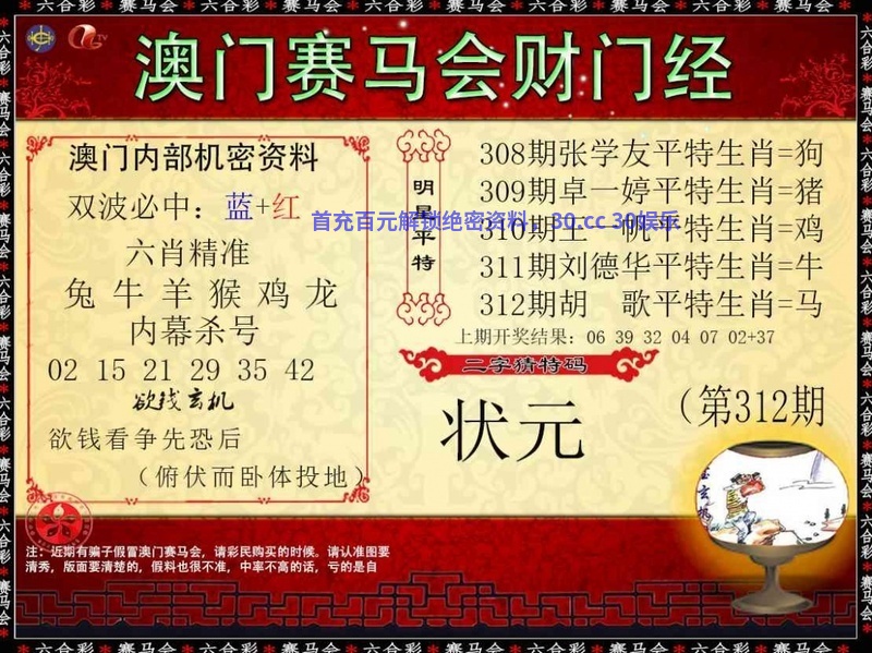 | 313期六肖 | 龙羊虎兔牛马 | 开:發00 |